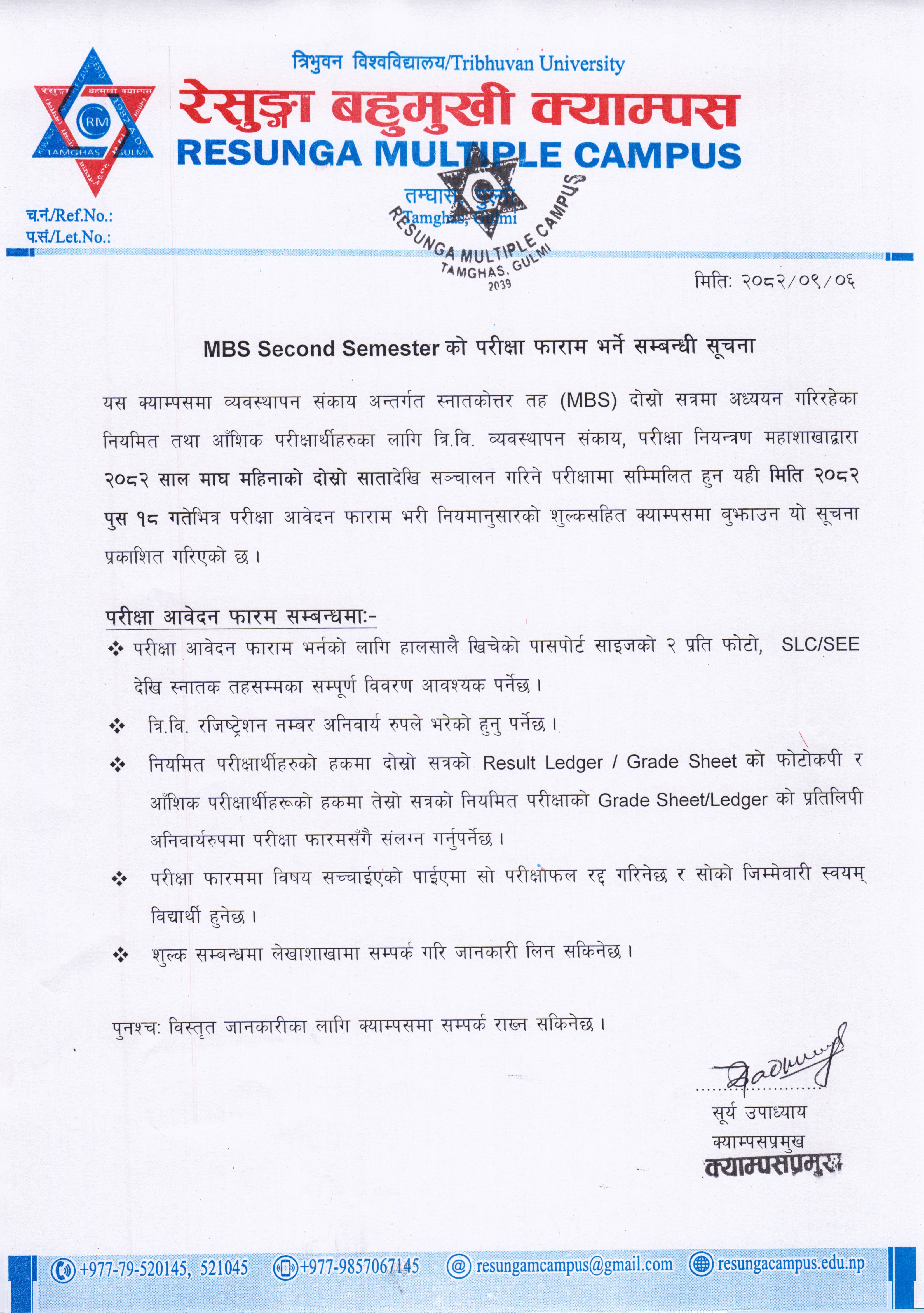 5 MBS Second Semester को परीक्षा फाराम भर्ने सम्बन्धी सूचना 2025-12-21 Image