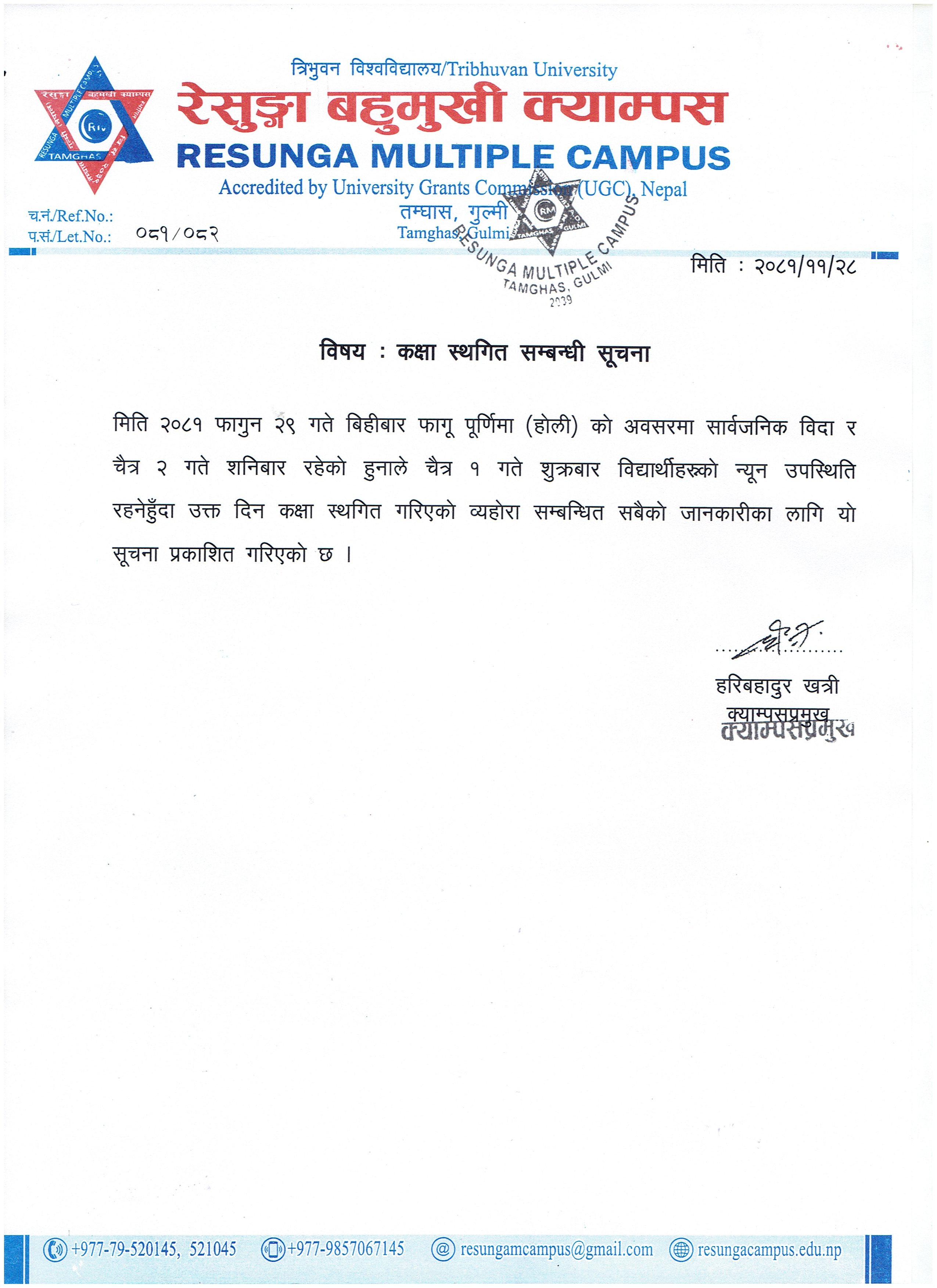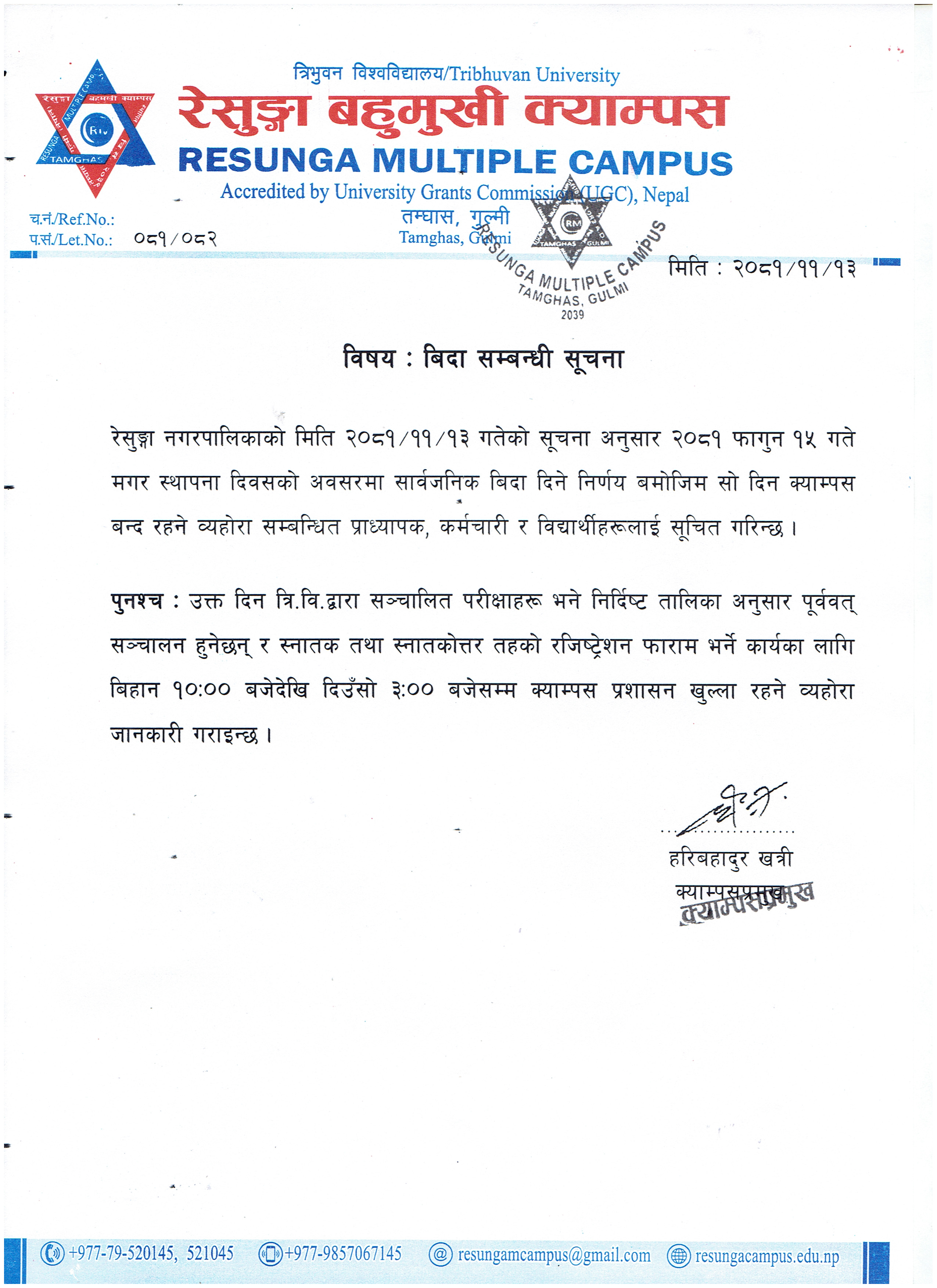 +977-985-706-7145 (Campus Chief)