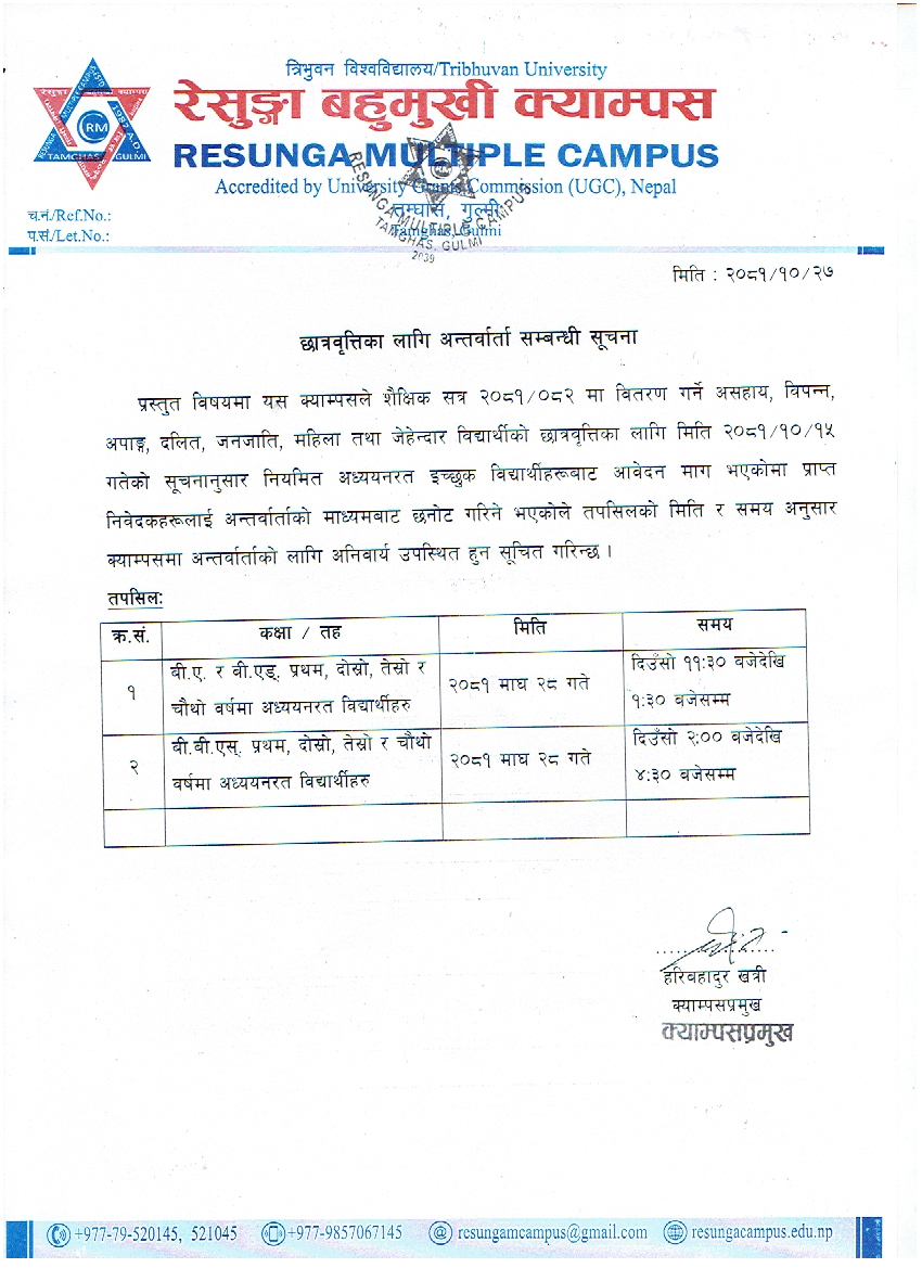 छात्रवृत्तिका लागि अन्तर्वार्ता सम्बन्धी सूचना