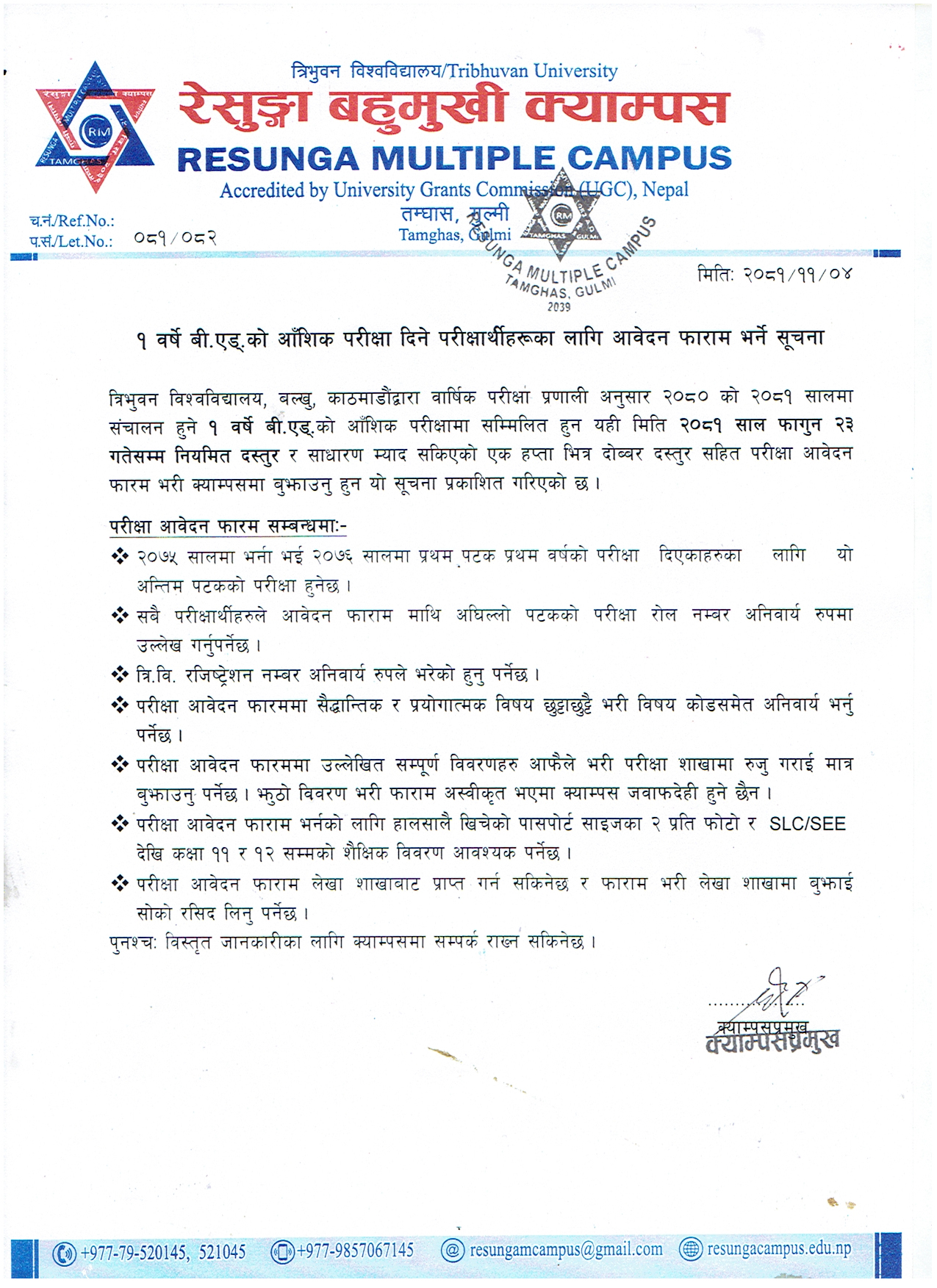 १ वर्षे बी.एड्. को आँशिक परीक्षाको फाराम भर्ने सूचना