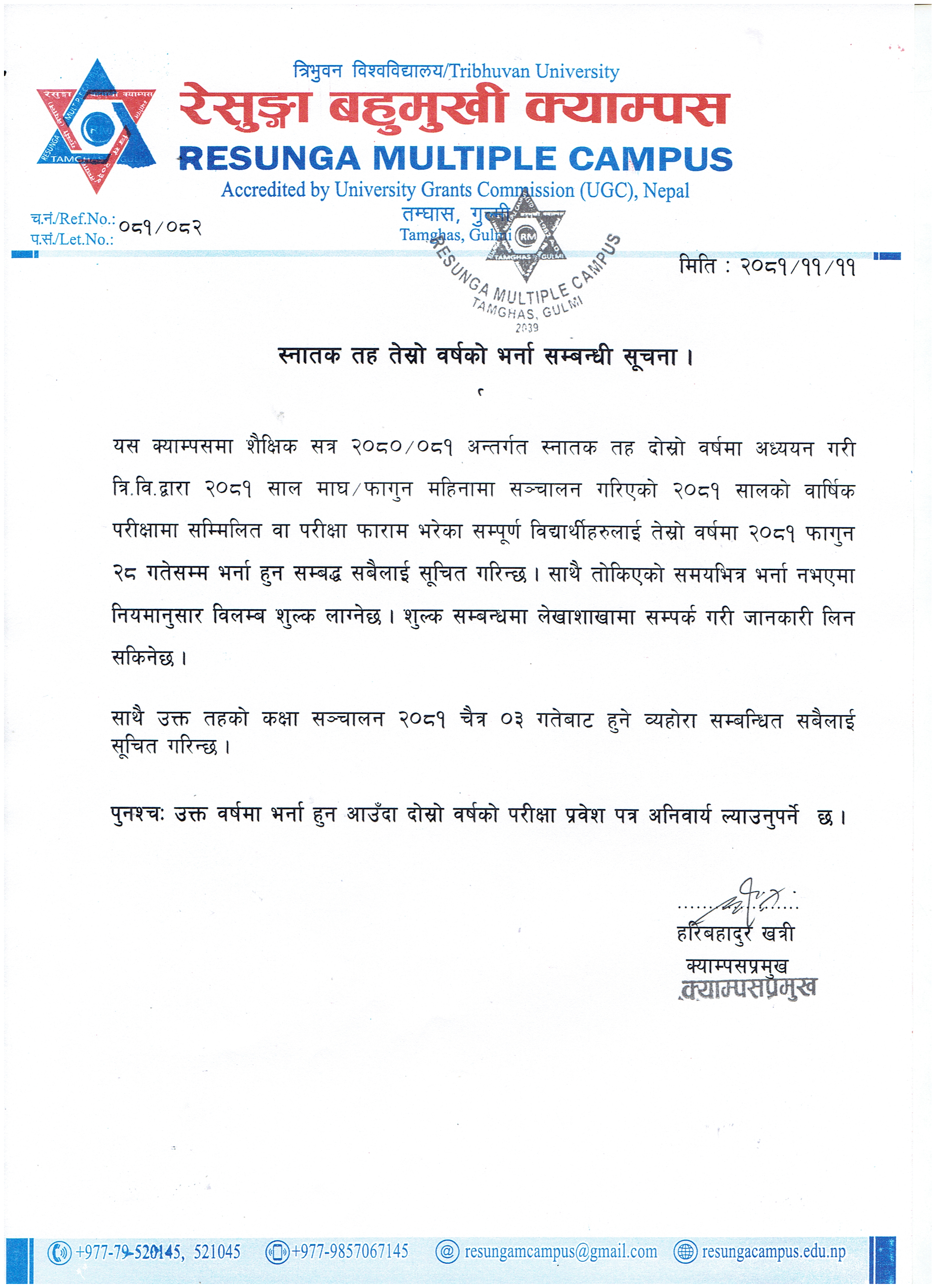 स्नातक तह तेस्रो वर्षको भर्ना सम्बन्धी सूचना