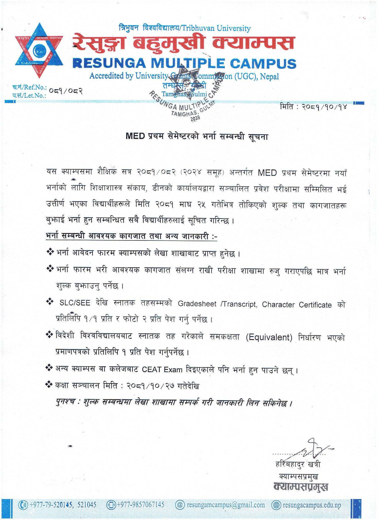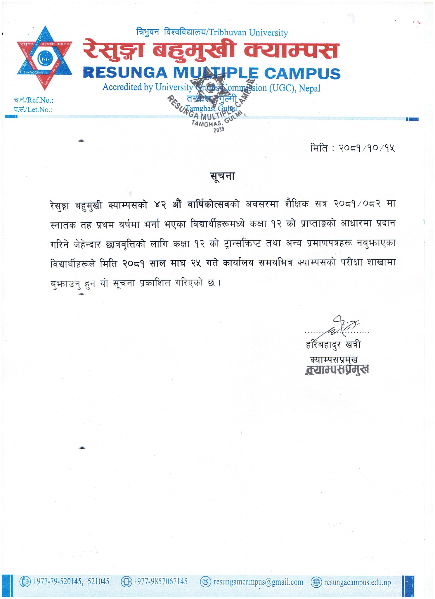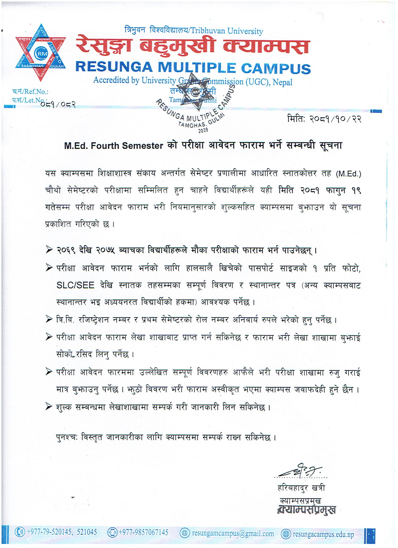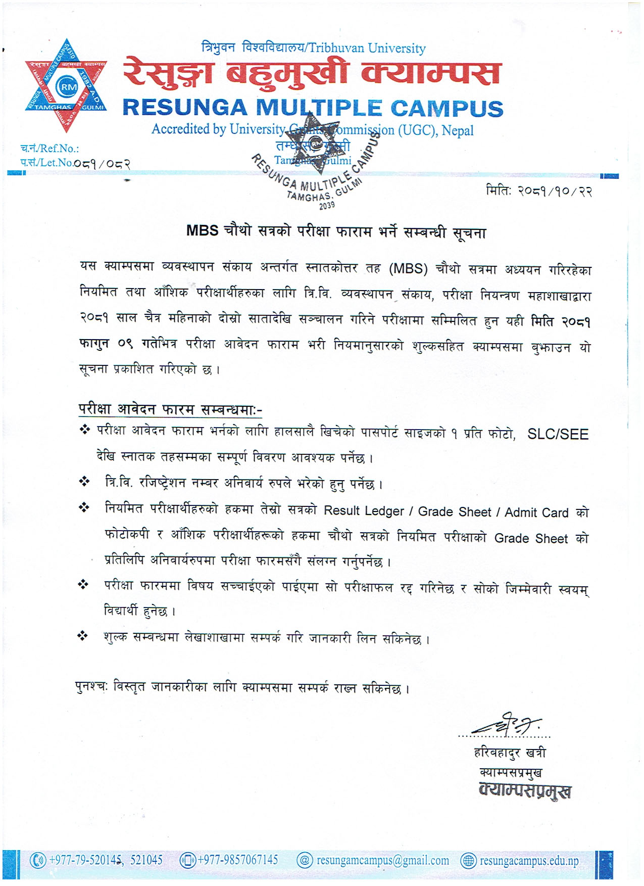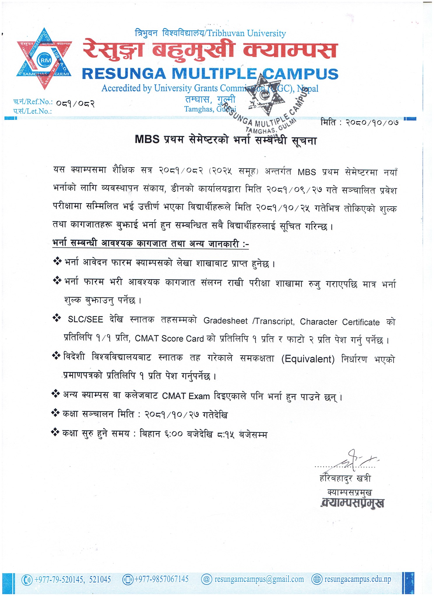 +977-985-706-7145 (Campus Chief)